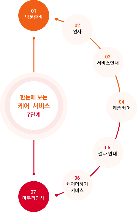 SK인텔릭스는 고객 방문 점검 서비스를 위한 케어 기본 절차를 7단계로 규정하고